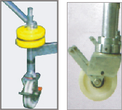 The wheel and brake unit consists of adjustable nut placed on thrust bearing to take axial thrust. The wheel has been fitted with radial bearing. When the mounting surface is uneven the adjustable nut is used for the alignment. The lever is provided to release or apply brakes.